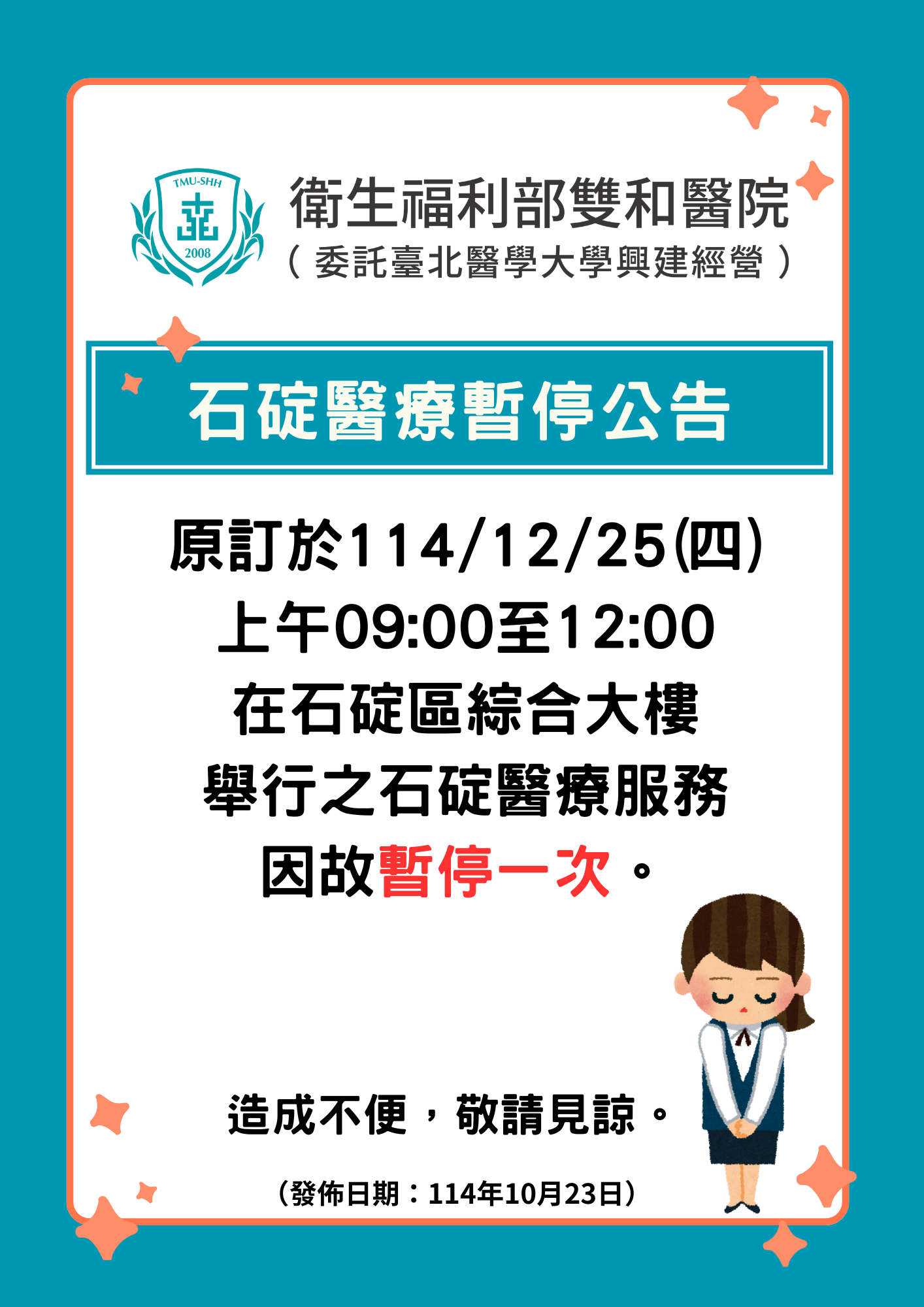 114.12.25石碇休診公告