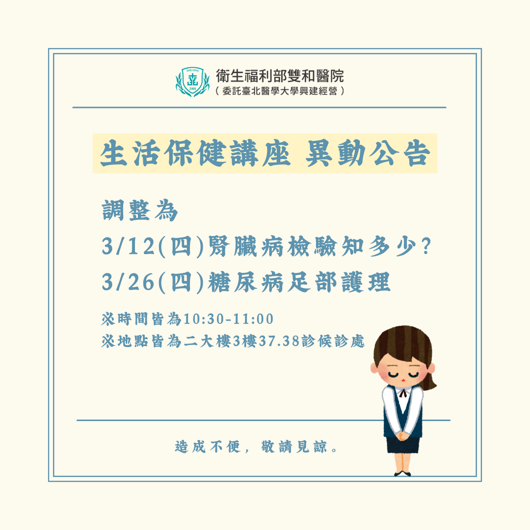 115年3月生活保健講座調整為: